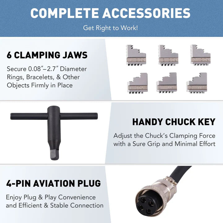 80mm 3 jaw rotary axis boasts 180° stepless angle adjustment and 360° smooth rotation for engraving around the complete inner or outer circumference of round objects, ideal for rings, bracelets, pens, cups, tubes, and more!